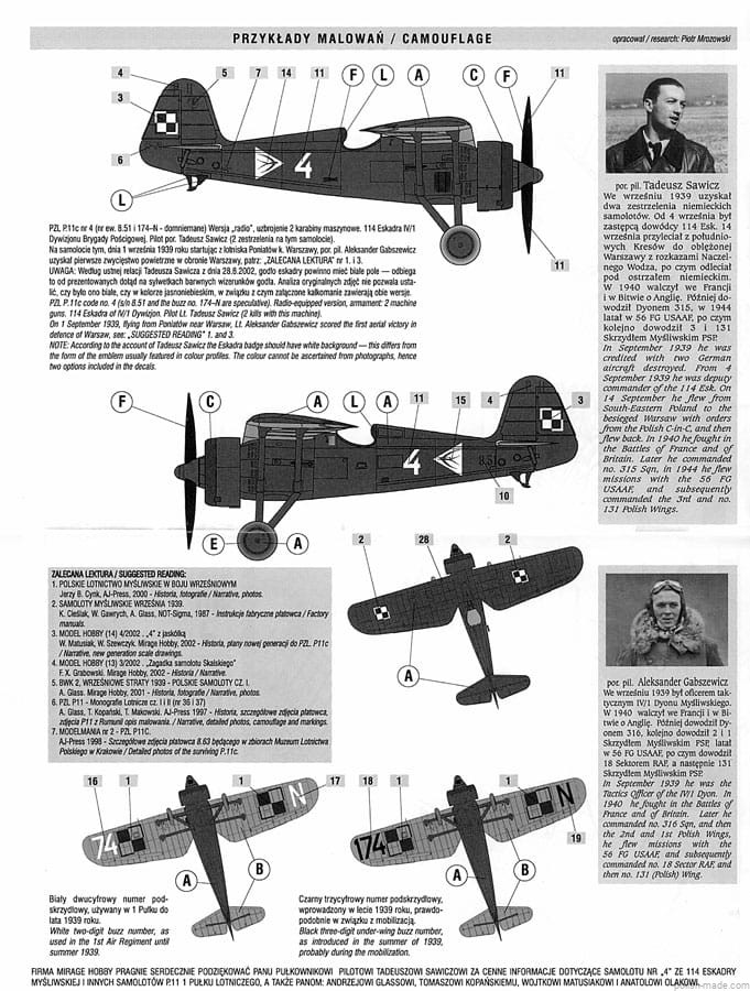 - P.11c "białe 4" nr. 8.51 - 114 Eskadra IV/1 Dywizjonu Brygady Pościgowej, pilot por. Tadeusz Sawicz, wrzesień 1939r.