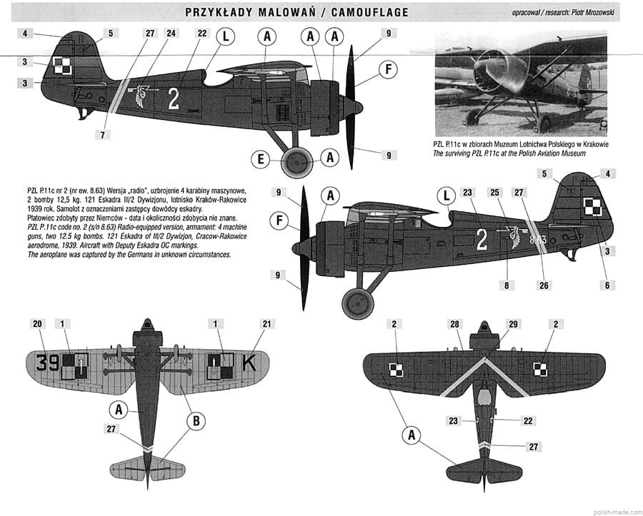 - P.11c "biała 2" nr. 8.63 - 121 Eskadra III/2 Dywizjonua, lotnisko Kraków-Rakowice, wrzesień 1939 r.