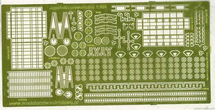 • blacha fototrawiona 60x120 mm zawierajaca elementy pokładu, wyposażenia i uzbrojenia okrętu.