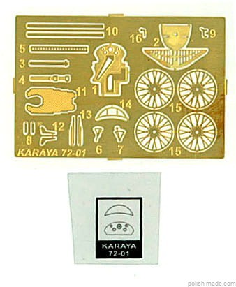• Blaszka fototrawiona z elementami wyposażenia kabiny, podwozia i kadłuba + zegary i wiatrochron na przezroczystej folii.