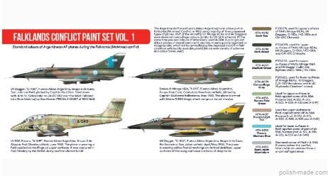 HTK-AS27 – Zestaw farb "Falklands Conflict" vol. 1 zawiera 8 kolorów używanych przez argentyńskie lotnictwo w czasie wojny o Falklandy: