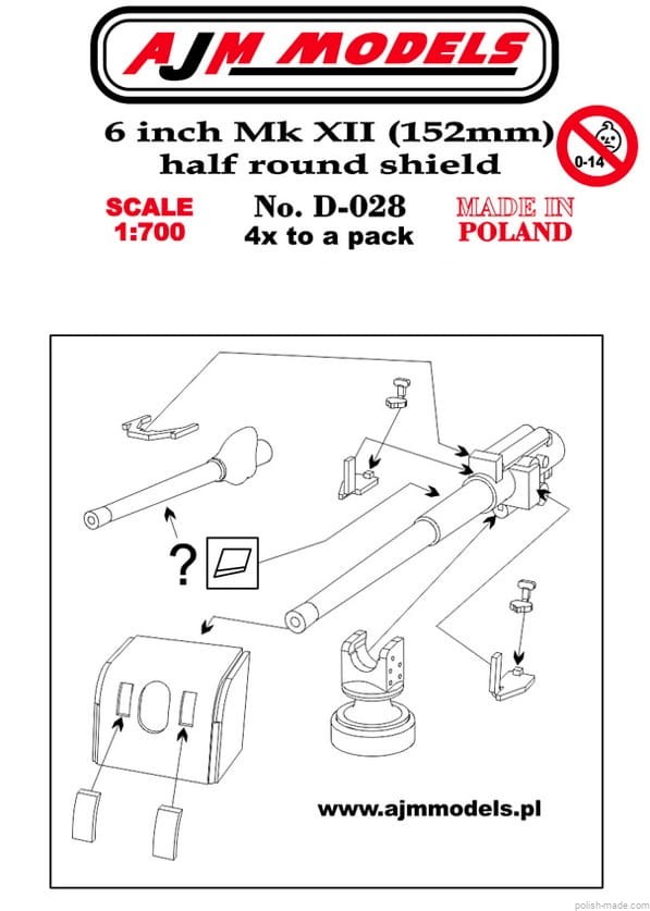 Armata morska 6-cal. Mk XII z półokrągłą osłoną (4 szt.) - 1/700