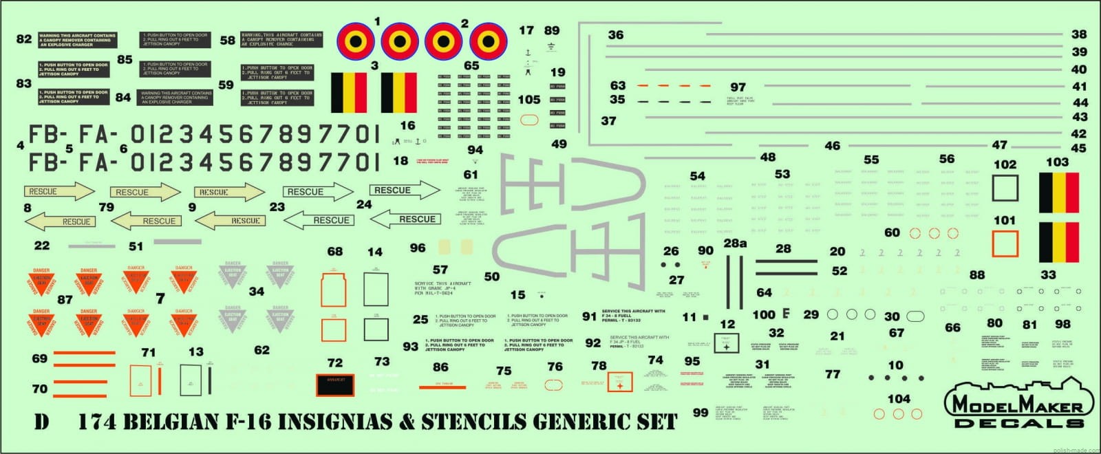 D32174 - Belgian f-16 insignias & stencils-generic set