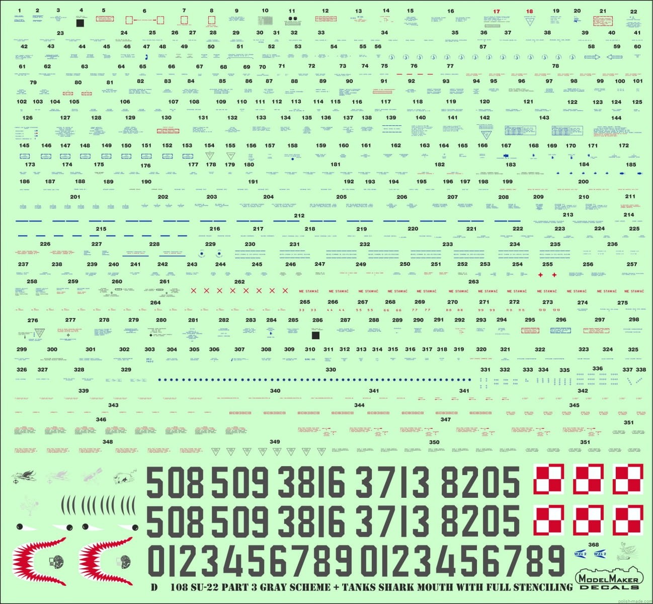 • Kalkomania umożliwiająca wykonanie oznaczeń i napisów eksploatacyjnych jednej z 5 wersji malowania: