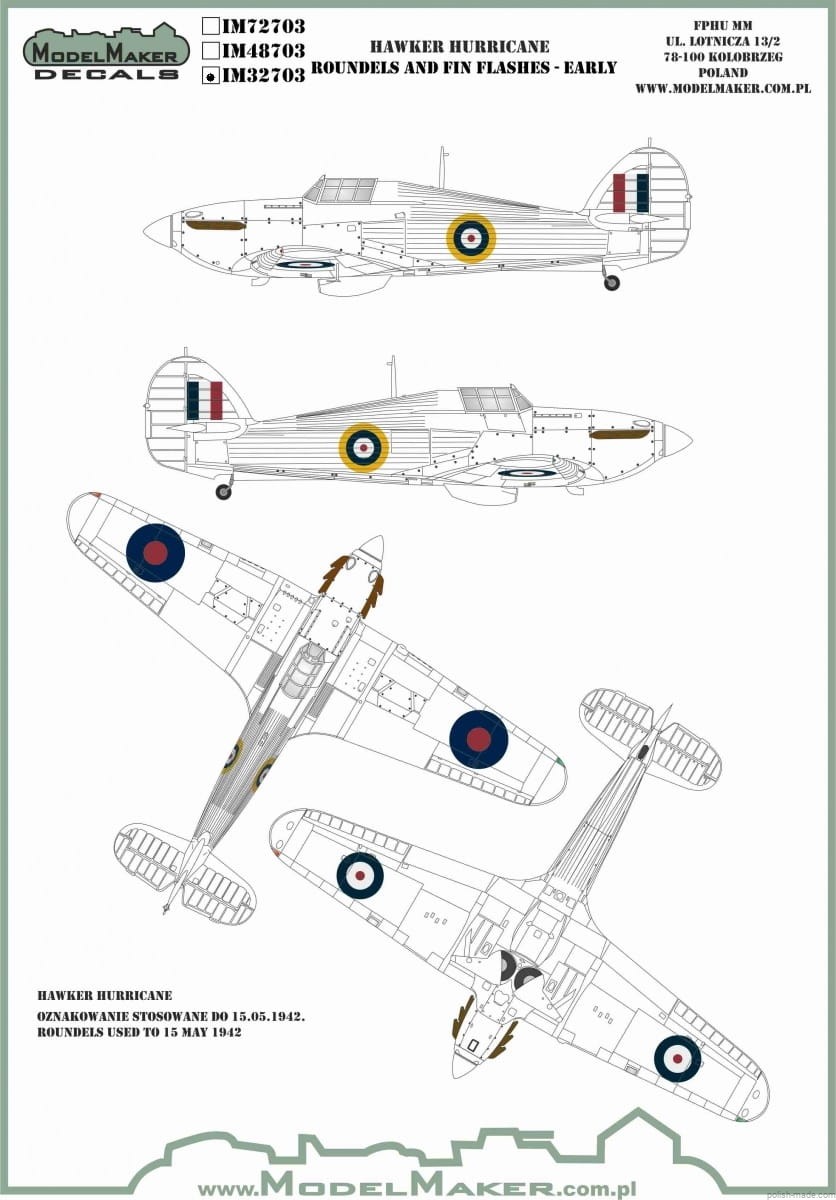IM32703 Hawker Hurricane - Roundels and Fin Flashes - Early