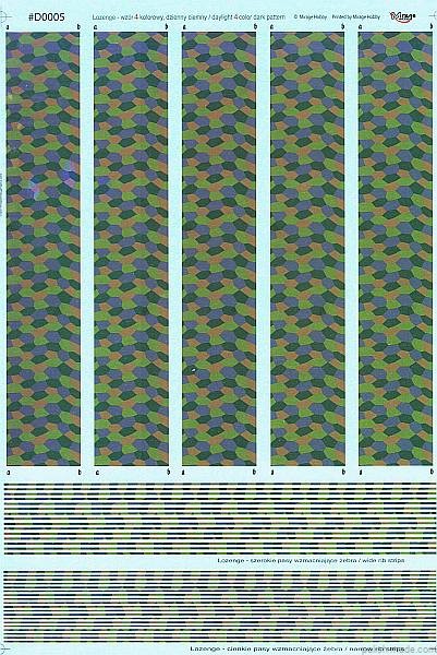 • Kalkomania zawierająca dwa wzory maskujące dzienny jasny i ciemny + pasy wzmacniające.