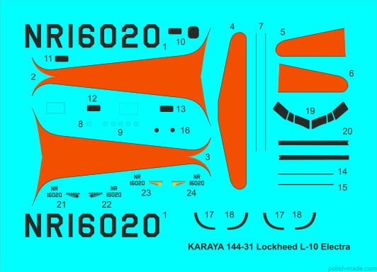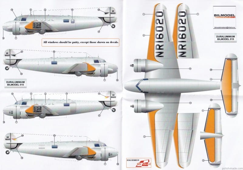 • Kalkomania umożliwiająca wykonanie jednej z 1 wersji malowania z 1937 z lotu Amelii Earhart.