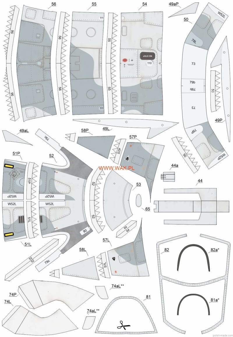 • 11 kartki z nadrukowanymi częściami.