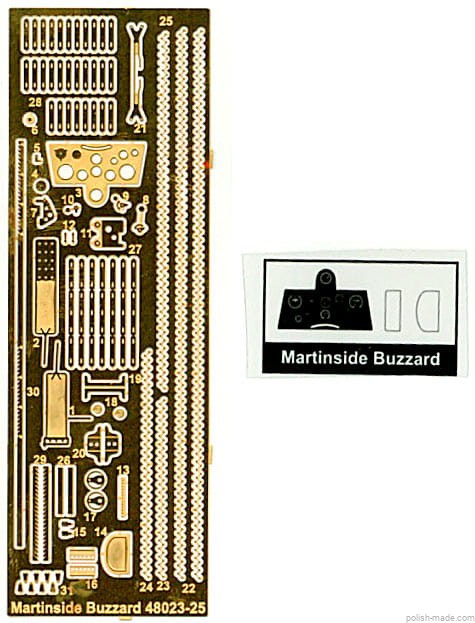 • Blaszka fototrawiona z elementami wyposażenia kabiny, podwozia i kadłuba + wiatrochron na przezroczystej folii.