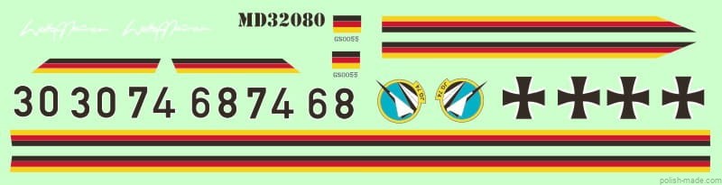 • Kalkomania umożliwiająca wykonanie oznaczeń i napisów eksploatacyjnych 2 wersji malowania:
