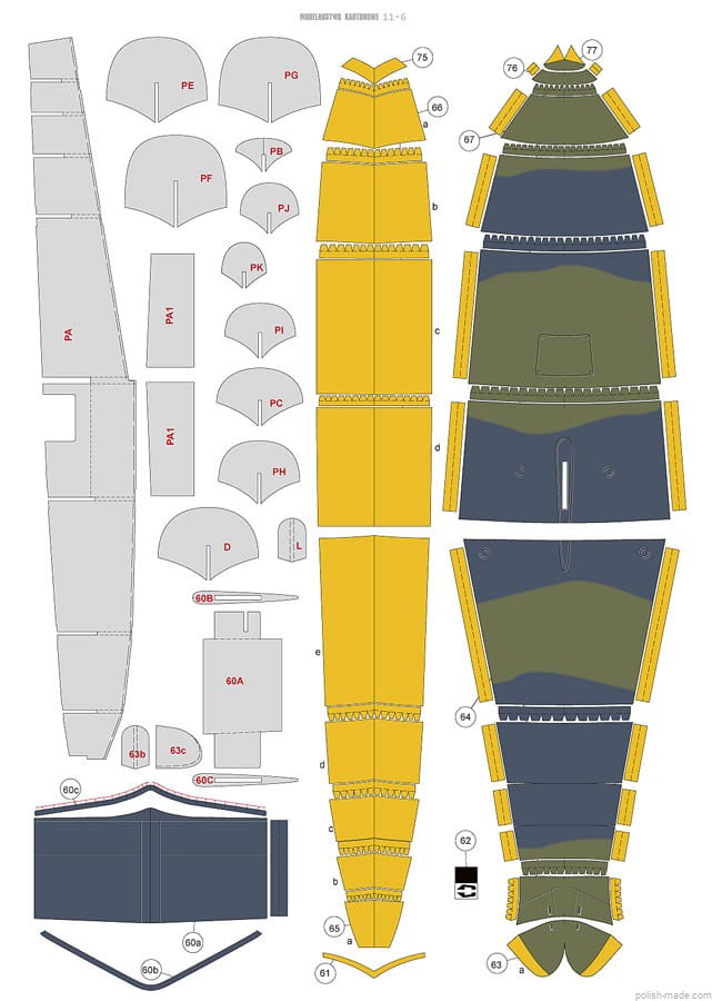 • 6 kartek z nadrukowanymi częściami - druk offsetowy.