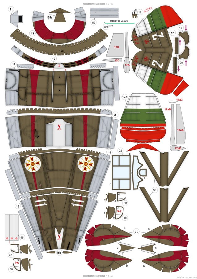 • 6 kartek z nadrukowanymi częściami - druk offsetowy.