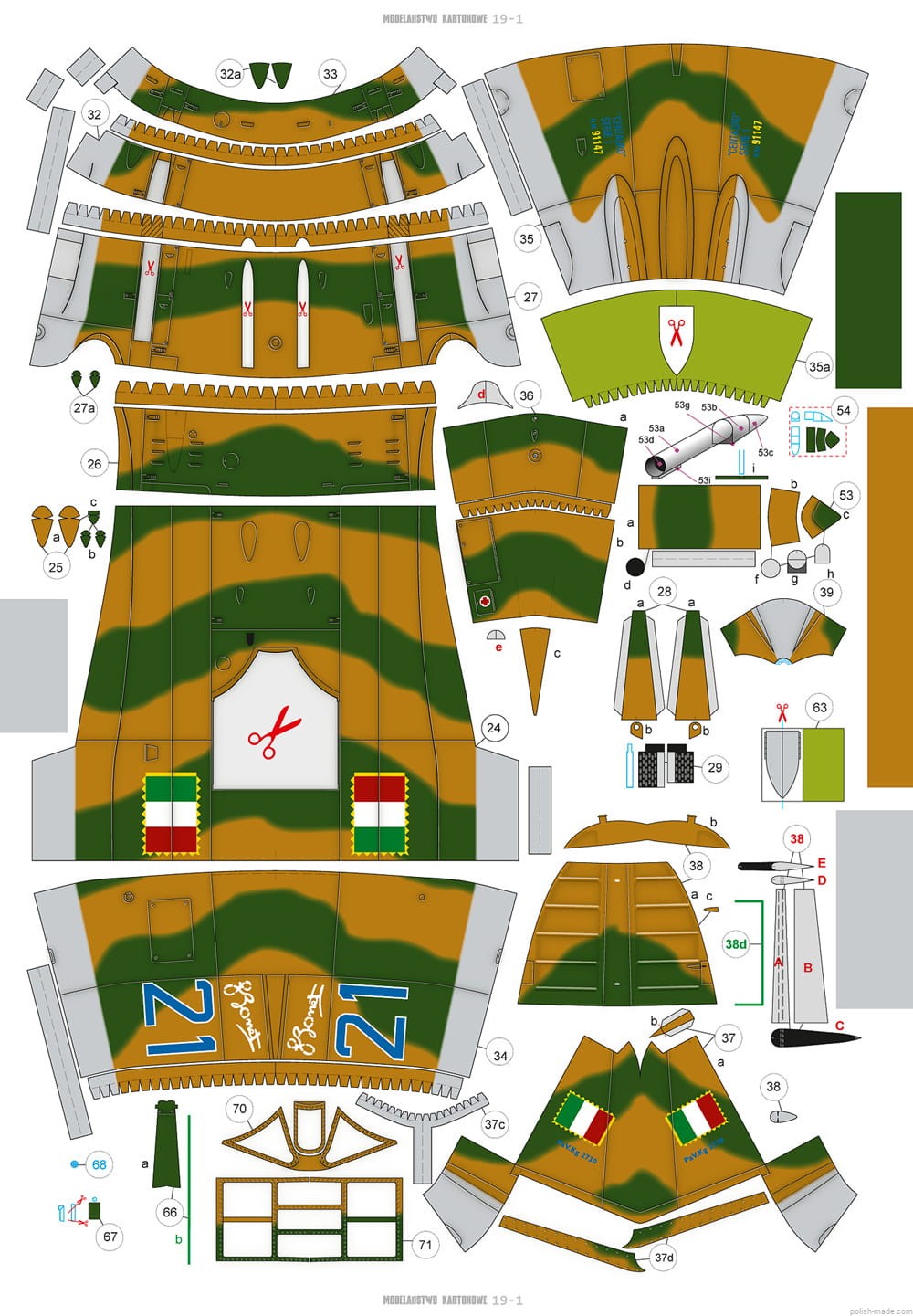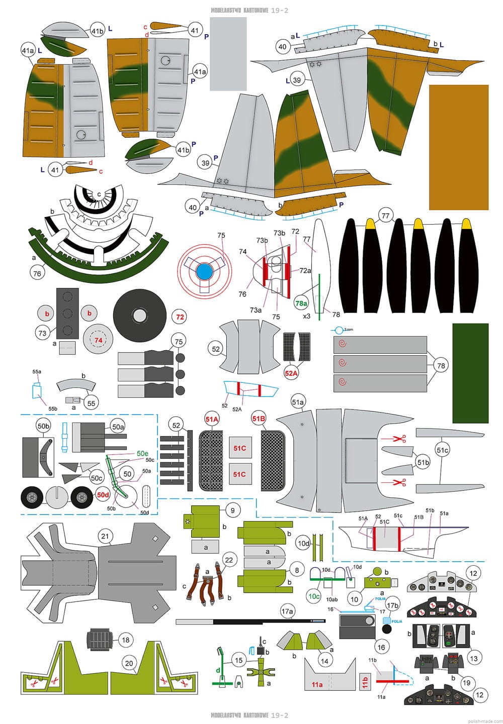 • 6 kartek z nadrukowanymi częściami - druk offsetowy.