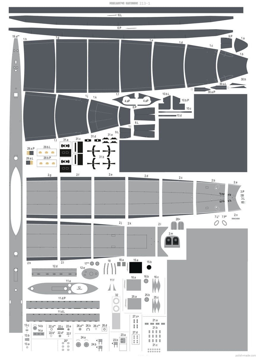 • 1 kartka z nadrukowanymi częściami - druk offsetowy.