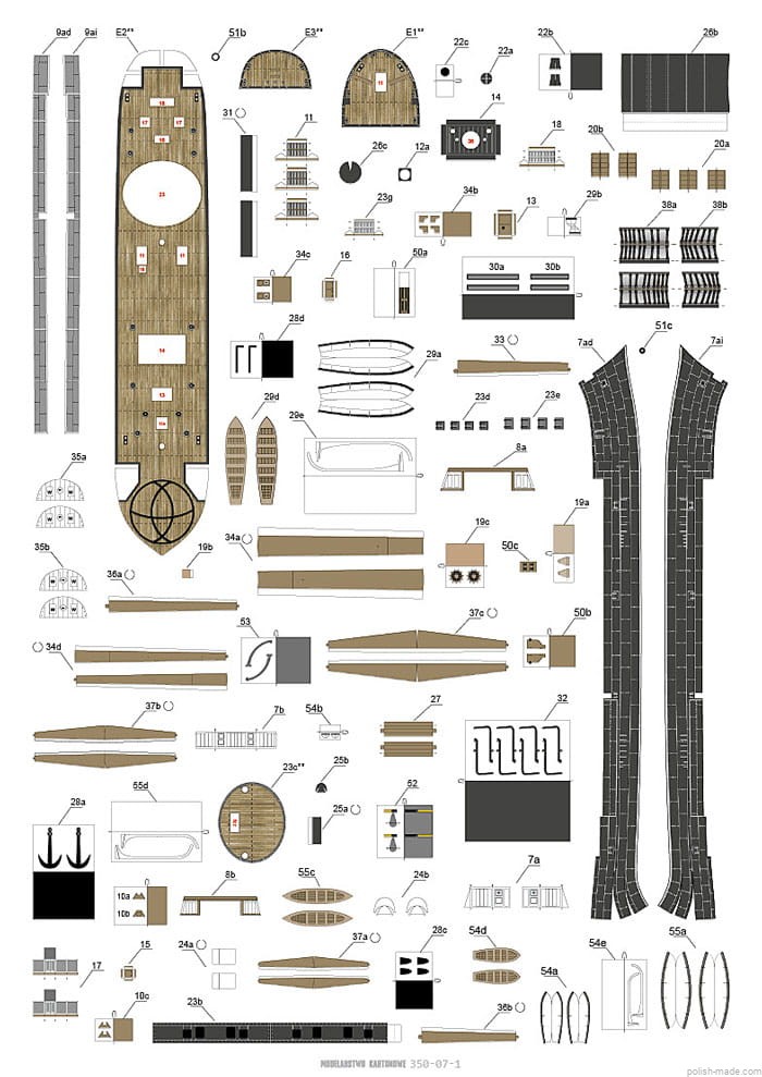 Model kartonowy do linii wodnej w skali 1/350.