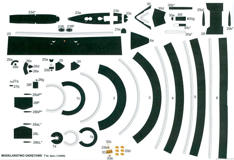 Pismo modelarskie w języku polskim wraz z modelem kartonowym w skali 1/200.