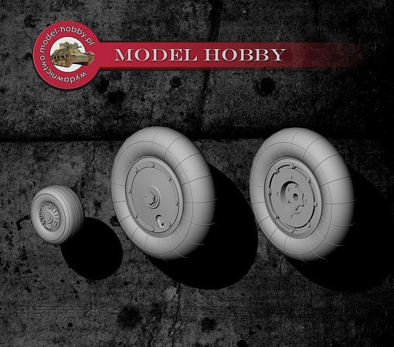 • Komplet kół do modelu wykonany z żywicy w technice druku 3D.