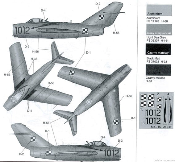 - MiG-15 '1012' - 39 Pułk Myśliwski, Lotnictwa Polskiego lata 50-te.