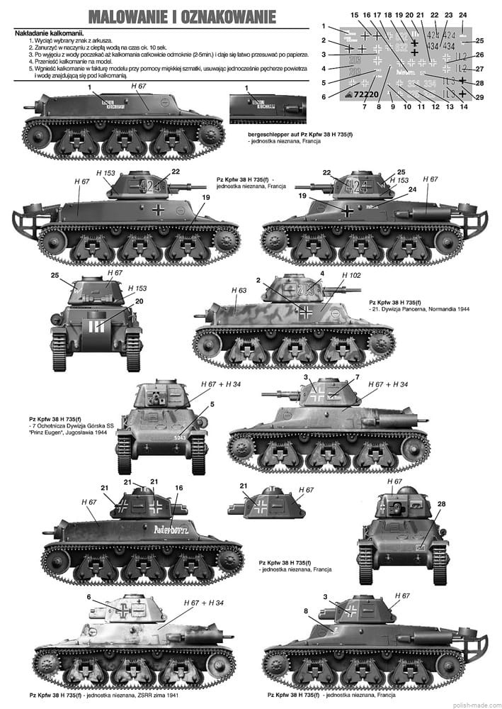 - Pz Kpfw 38 H 735 (f) - jednostka nieznana, Francja.