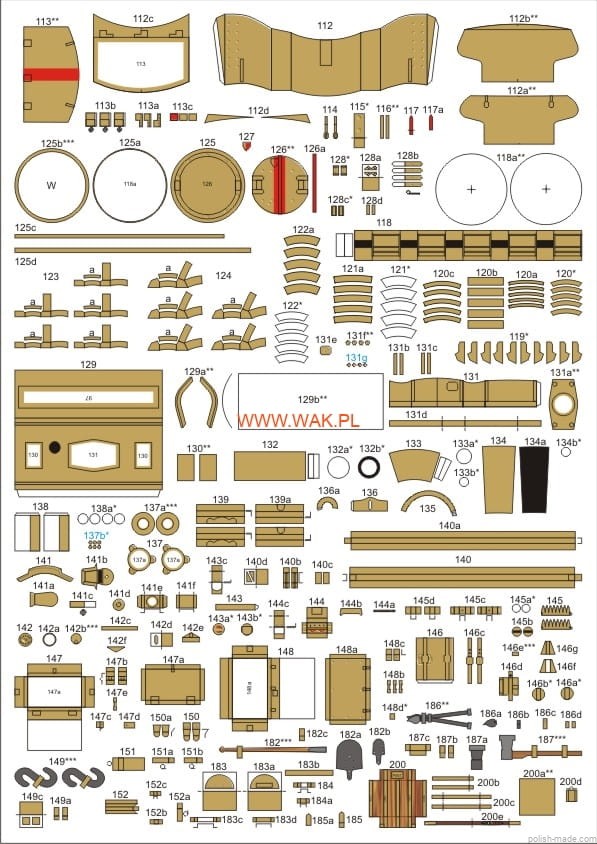 Informacja dla sklejających model: części 198b i 199 (gąsienice) podkleić na tekturę o grubości 0.5 mm