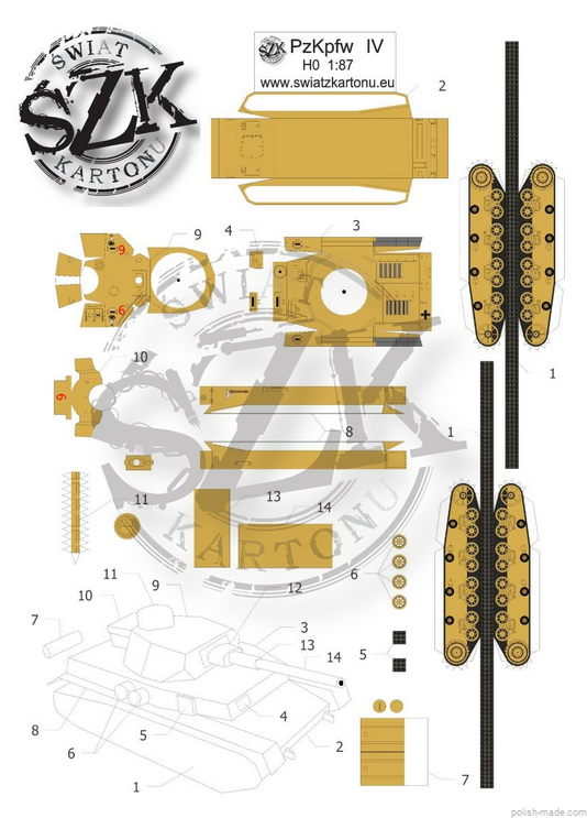 • 1 arkusz z nadrukowanymi częściami, opis modelu, instrukcja montażu, szablony detali do samodzielnego wykonania. (druk cyfrowy).