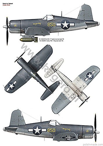 • plany 1/48 - rzuty z góry i z dołu wersja F4U 1 i U 2 na wkładce.